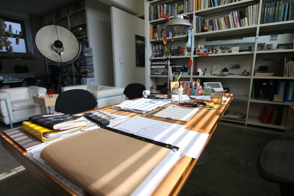 Ai quadri di pittori contemporanei appesi alle pareti, si alternano i disegni tecnici dei progetti in corso di realizzazione. Un loft seminterrato, dotato di tutte le moderne tecnologie, con un piccolo laboratorio di falegnameria e un grande archivio di materiali da costruzione, e con all’esterno uno splendido giardino fiorito. Una struttura avvolta da una rigogliosa vite canadese, che con le stagioni definisce il passare del tempo e ne modifica continuamente l’aspetto.